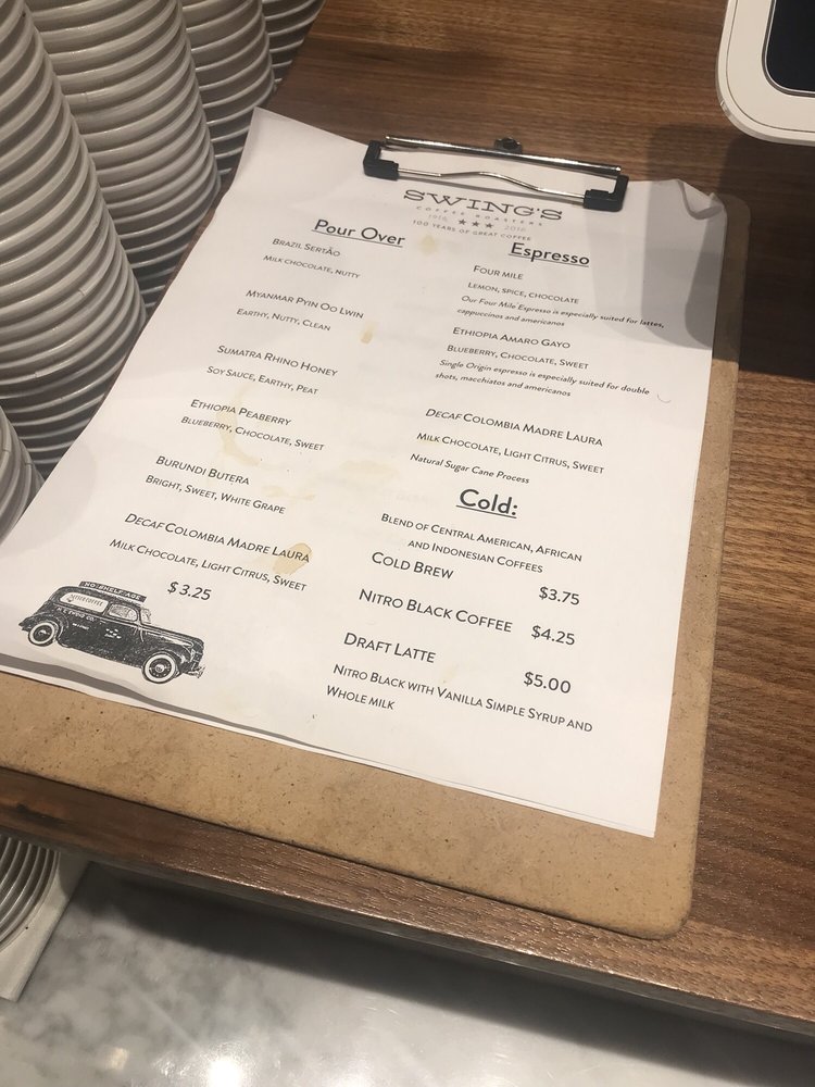 Swing's Coffee Menu